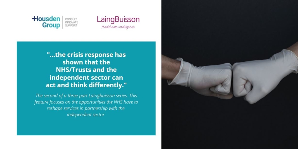 Philip Housden and Professor Gordon Wishart have been reviewing the impact of the Covid-19 pandemic on the private healthcare market, for healthcare business intelligence provider, Laingbuisson. In the second of a three-part series which was published in September, they examine the opportunities for the NHS to reshape services in partnership with independent sector providers.