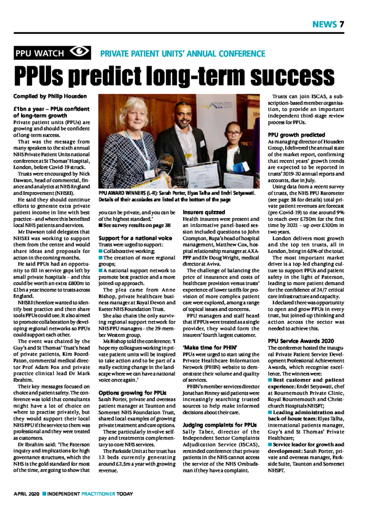 The Independent Practitioner Today publication featured an article about the NHS Private Patient Units’ national conference which took place at St Thomas’ Hospital in mid-March. Read the feature here: