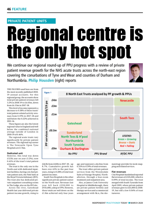 This month our spotlight is focussed on the private patient revenue growth for the NHS acute trusts across the north-east region, covering Tyne and Wear, Durham and Northumbria. Download the article here: